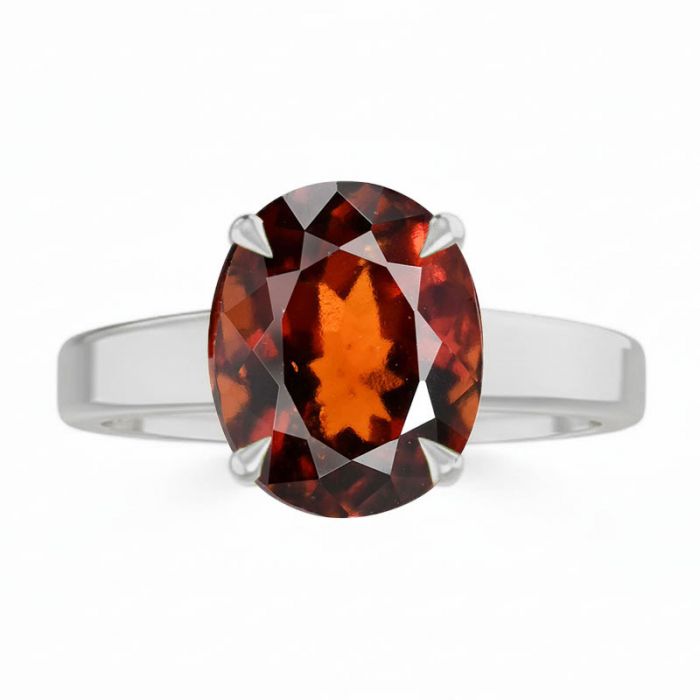 Astrological Natural Hessonite(Gomed) Silver Classic Solitaire Ring Design-R2